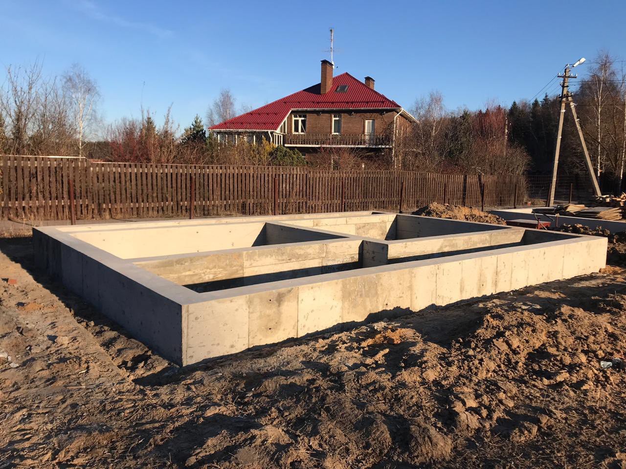 У этого проекта главная особенность — масштаб. Будущий дом планировался площадью 400 м2, поэтому и фундамент сложный и большой. Как мы это сделали?